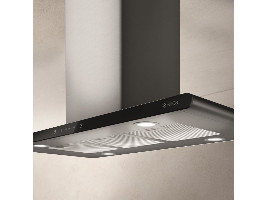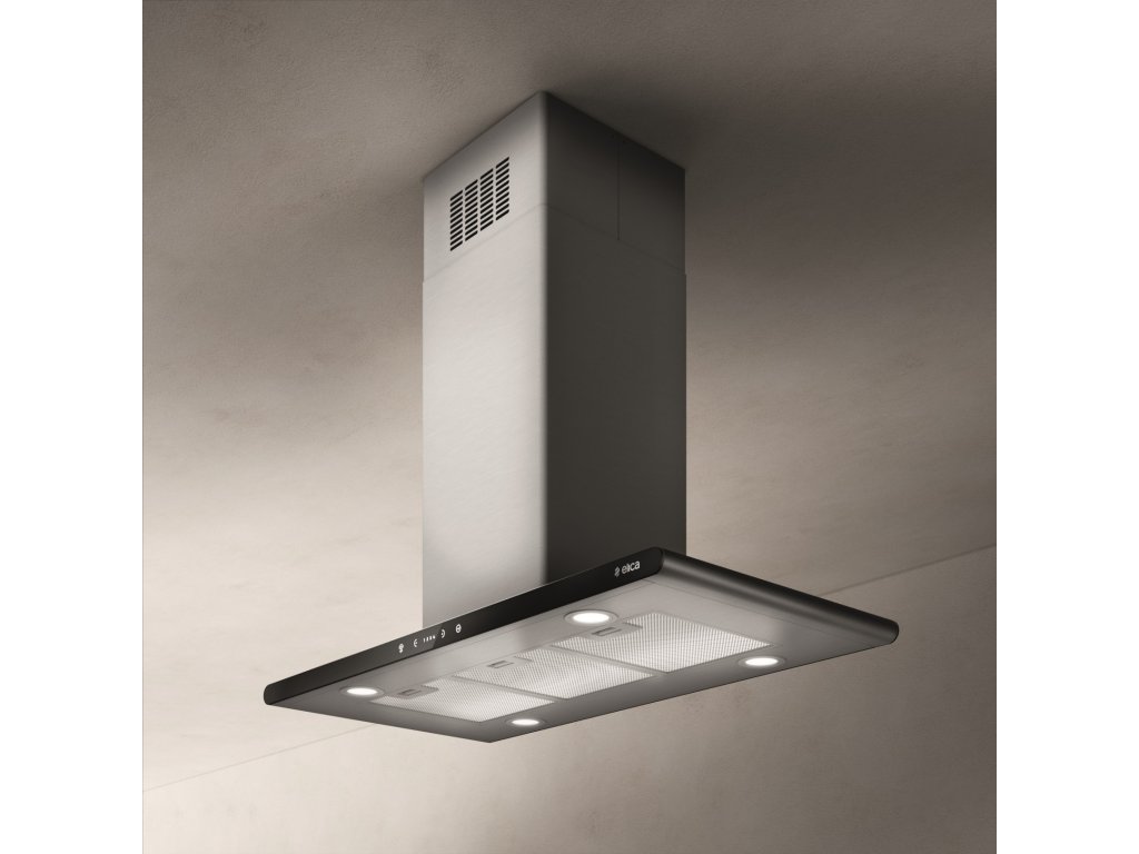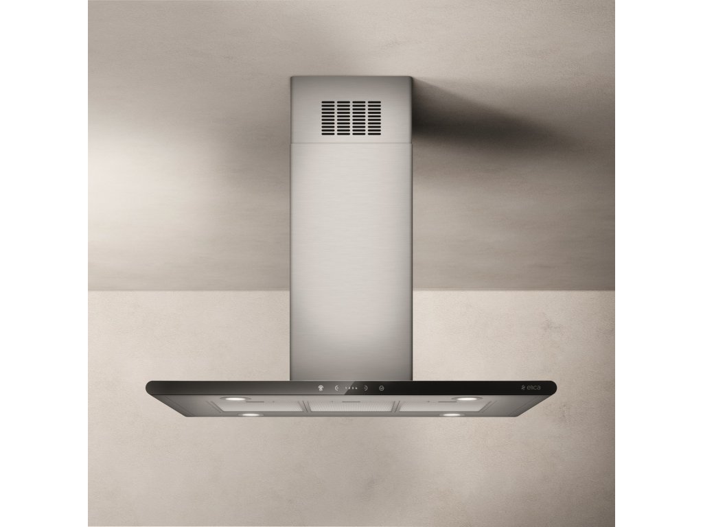 ELICA GALAXY je ostrůvkový odsavač par (digestoř) z nerezové oceli doplněný o černé sklo. Odsavač par s výkonem 288-559 m3/h a v intenzivním výkonu dokonce 647 m3/h, mile překvapí hlučností pouze 52-73 db(A) a dotykovým ovládáním.