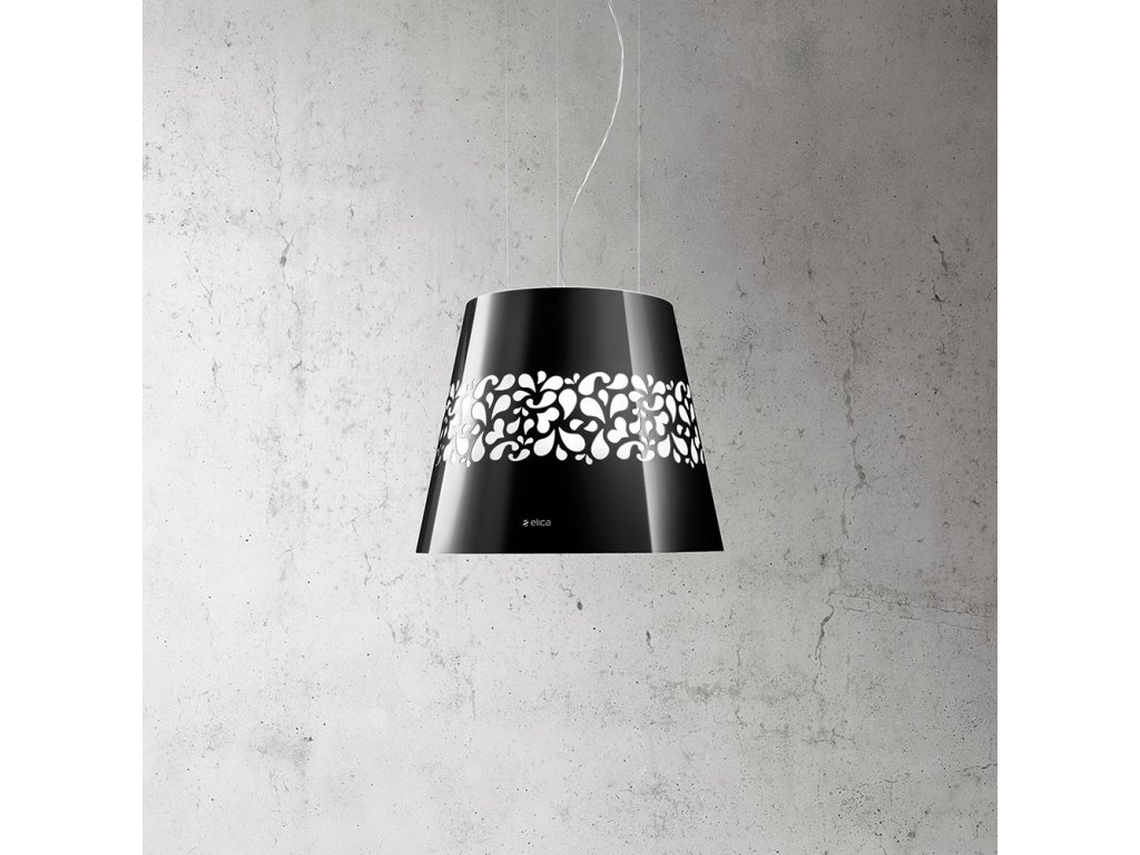 ELICA JASMINE je ostrůvkový odsavač par (digestoř) vyroben z černého lakovaného kovu. Ornamenty na těle odsavače par jsou podsvětleny. Odsavač par s výkonem 240-603 m3/h, mile překvapí velmi malou hlučností 47-67 db (A).