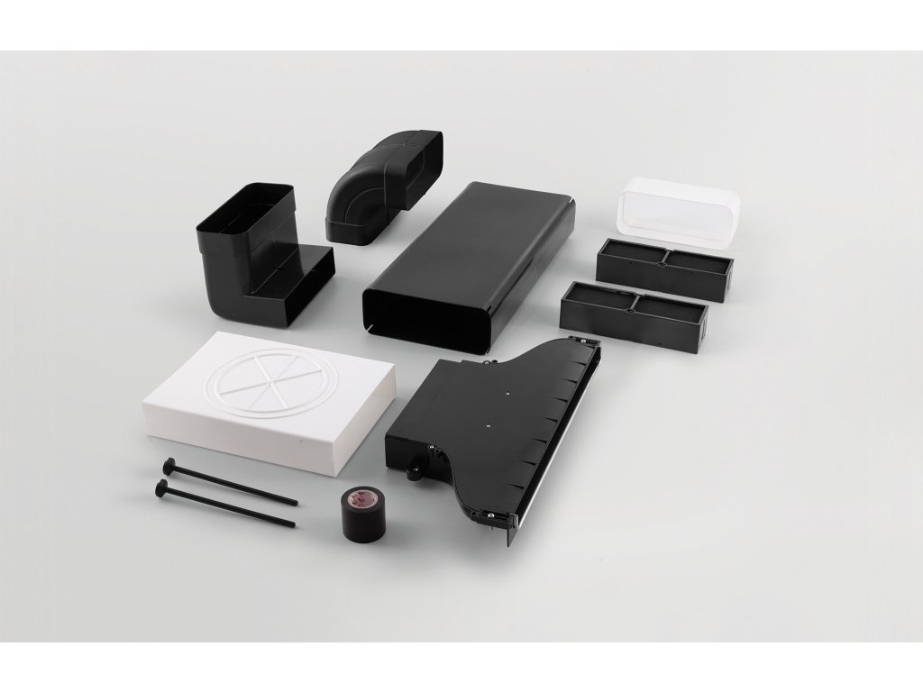 Sada obsahuje uhlíkové filtry REVOLUTION a potrubí zakončené výduchem pod skříňkou.