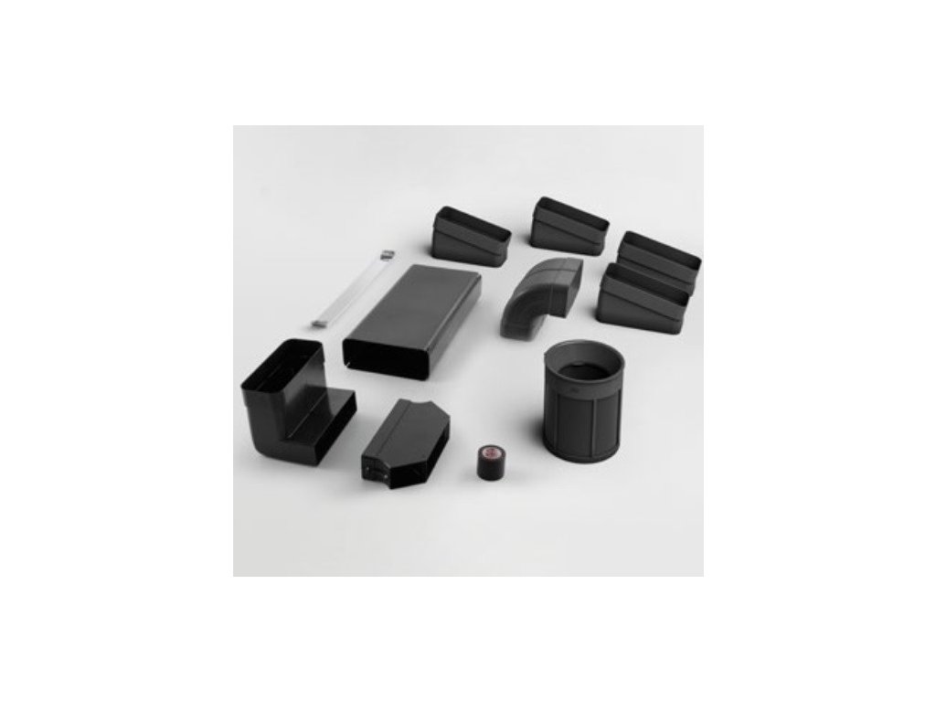 Sada obsahuje kombinovaný tukový a uhlíkový filtr EVO a potrubí zakončené výduchem pod skříňkou.