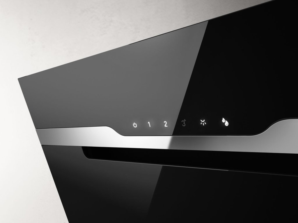 ELICA MAJESTIC elegantní odsavač par (digestoř) v kombinaci černého skla a nestárnoucího nerezu.