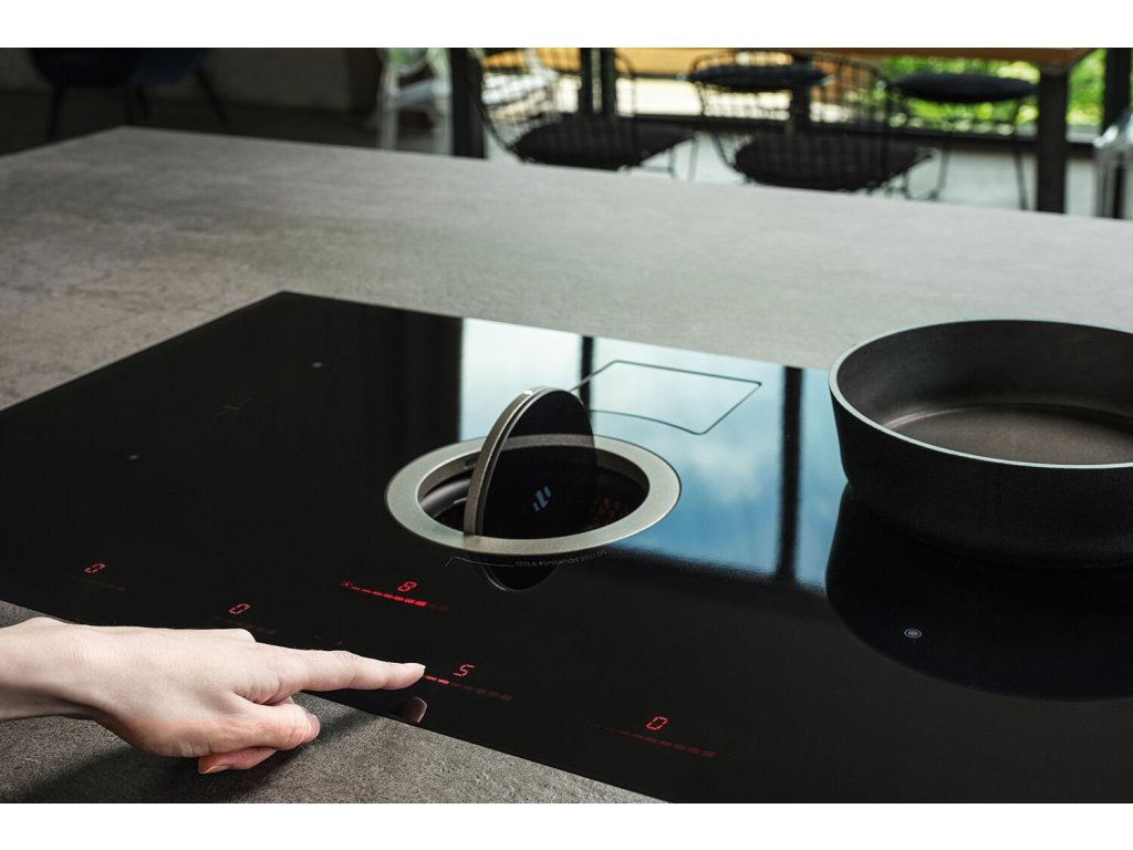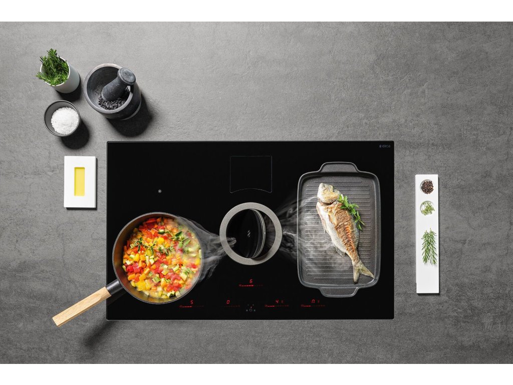 ELICA NIKOLATESLA SWITCH nová varná deska s integrovaným odsavačem par od Elica navržený designérem společnosti ELICA FABRIZIO CRISA představená na veletrhu EUROCUCINA 2018. ELICA NIKOLATESLA SWITCH je vyroben z černého bezpečnostního skla. Systém odtahu, vybavený centrálním ventilátorem, může dosáhnout velmi vysoké úrovně výkonnosti z hlediska zachytávání výparů, úrovně hluku a energetické účinnosti. Díky přímé komunikaci s varnou deskou obdrží NIKOLATESLA SWITCH informace přicházející z varné zóny a automaticky nastaví ideální hodnoty odtahu. K dispozici je jak v režimu odtahu, tak i recirkulaci, varná deska byla navržena tak, aby dobře zapadla do jakéhokoli typu obytného prostoru. Varná deska je vybaven velice pohodlným dotykovým ovládáním posuvným (slider).