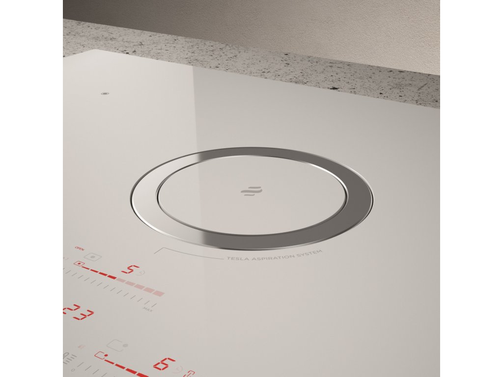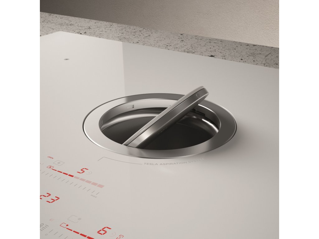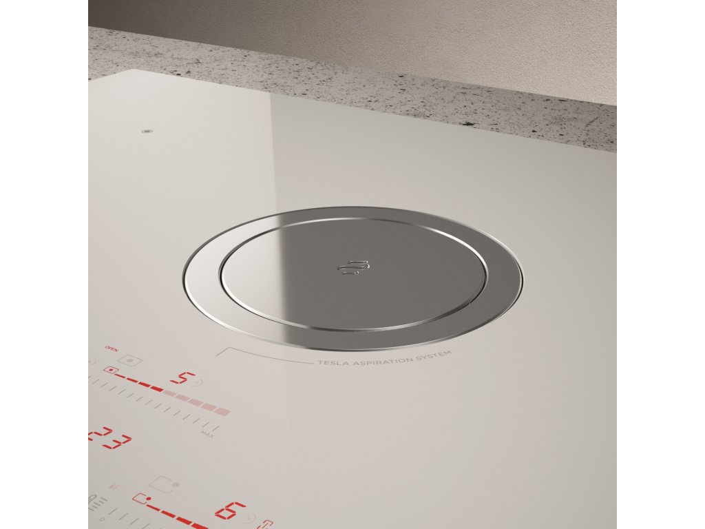 ELICA NIKOLATESLA SWITCH nová varná deska s integrovaným odsavačem par od Elica navržený designérem společnosti ELICA FABRIZIO CRISA představená na veletrhu EUROCUCINA 2018. ELICA NIKOLATESLA SWITCH je vyroben z bílého bezpečnostního skla. Systém odtahu, vybavený centrálním ventilátorem, může dosáhnout velmi vysoké úrovně výkonnosti z hlediska zachytávání výparů, úrovně hluku a energetické účinnosti. Díky přímé komunikaci s varnou deskou obdrží NIKOLATESLA SWITCH informace přicházející z varné zóny a automaticky nastaví ideální hodnoty odtahu. K dispozici je jak v režimu odtahu, tak i recirkulaci, varná deska byla navržena tak, aby dobře zapadla do jakéhokoli typu obytného prostoru. Varná deska je vybaven velice pohodlným dotykovým ovládáním posuvným (slider).