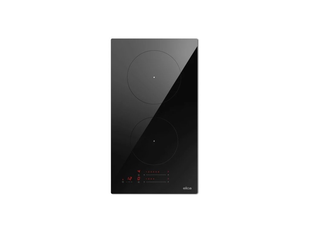 Indukční varná deska se dvěma varnými zónami, výraznou úsporou energie, dotykovým posuvným ovládáním a černým designem, který doplňují jemné serigrafické detaily.