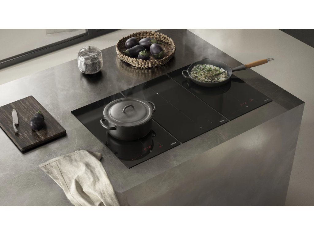 Tato indukční varná deska se dvěma zónami je navržena tak, aby se vešla i do velmi malých prostor nebo doplnila jiné varné desky. Disponuje funkcí propojení dvou zón, která zajišťuje rovnoměrný výkon a teplotu, i při použití většího nádobí. Intuitivní dotykové posuvné ovládání vám poskytne plnou kontrolu nad všemi nastaveními a funkcemi desky. Funkce ohřevu je například určena pro pomalé vaření, ohřívání mléka a polévek, přípravu pudinků a omáček bez přehřátí a pro udržování hotových pokrmů v teple. Varná deska se prostřednictvím Bluetooth synchronizuje s digestořemi Elica, které pak automaticky upravují osvětlení a intenzitu odsávání podle aktivovaných varných zón.