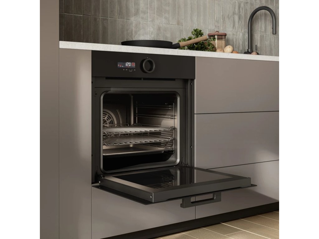 Vestavná trouba nabízí designové otočné ovládání, pomocí kterého je ovládání této trouby velice uživatelsky přívětivé. Trouba nabízí tradiční ohřev, horky vzduch, gril, a speciální program pro přípravu pravé Italské PIZZA.
