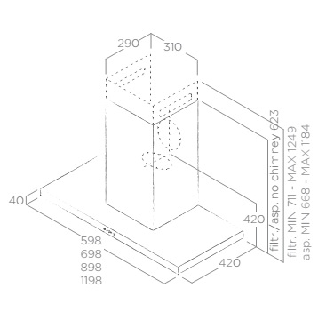 Odsavač par (digestoř) je opatřen osvětlením STRIP LED s výkonem 1x7W a teplotou 3500K.